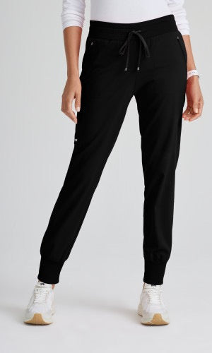- Fit: Classic Rise: Mid Silhouette: Jogger Knit ribbed waist with drawcord