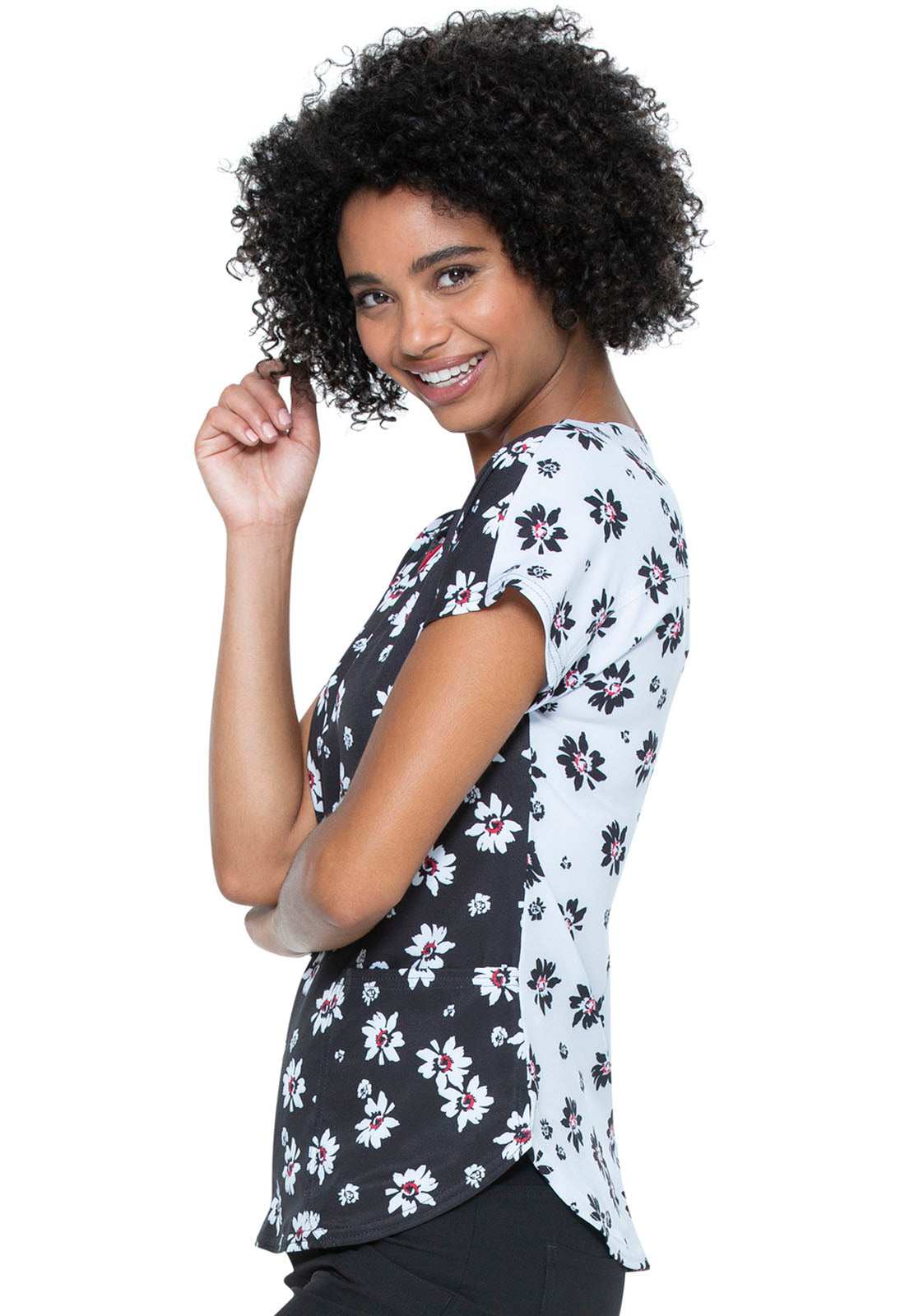 This stylish short sleeve dolman top features an on-trend lace-up detail at the rounded front neck, patch pockets at the waist, and instrument loops. Additional design details include a back yoke seam, our signature woven neck tape, and double needle topstitching throughout. Contemporary fit. Center back length: 26"